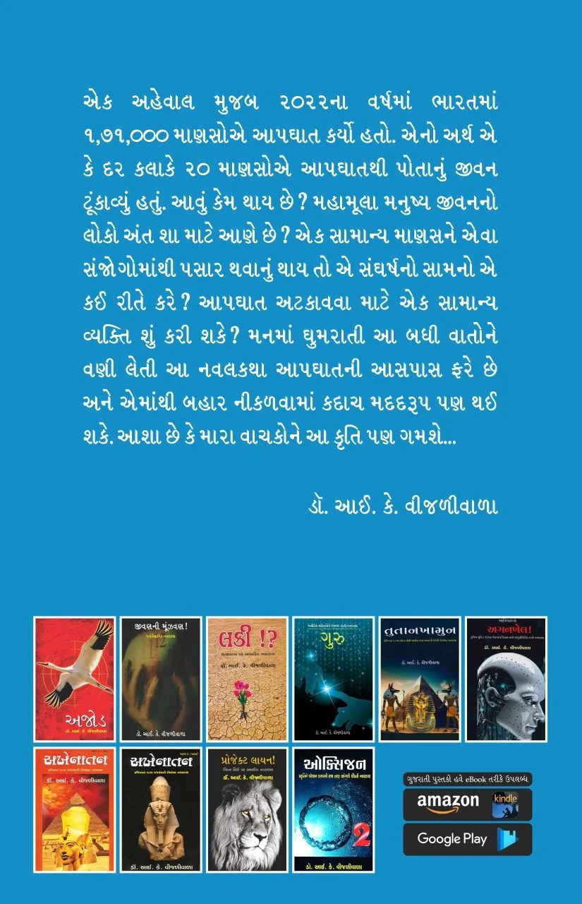 એક અહેવાલ મુજબ ૨૦૨૨ના વર્ષમાં ભારતમાં ૧,૭૧,૦૦૦ માણસોએ આપઘાત કર્યો હતો. એનો અર્થ એ કે દર કલાકે ૨૦ માણસોએ આપઘાતથી પોતાનું જીવન ટૂંકાવ્યું હતું. આવું કેમ થાય છે? મહામૂલા મનુષ્ય જીવનનો લોકો અંત શા માટે આણે છે? એક સામાન્ય માણસને એવા સંજોગોમાંથી પસાર થવાનું થાય તો એ સંઘર્ષનો સામનો એ કઈ રીતે કરે? આપઘાત અટકાવવા માટે એક સામાન્ય વ્યક્તિ શું કરી શકે? મનમાં ઘુમરાતી આ બધી વાતોને વણી લેતી આ નવલકથા આપઘાતની આસપાસ ફરે છે અને એમાંથી બહાર નીકળવામાં કદાચ મદદરૂપ પણ થઈ શકે. આશા છે કે મારા વાચકોને આ કૃતિ પણ ગમશે…