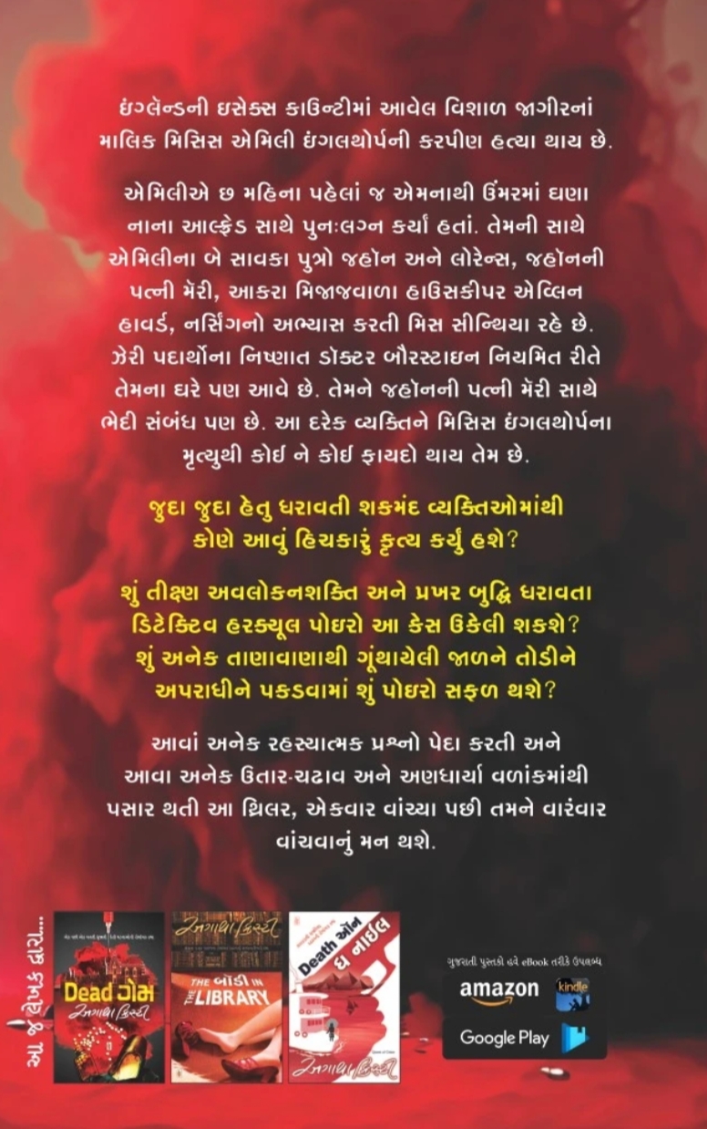 શું તીક્ષ્ણ અવલોકનશક્તિ અને પ્રખર બુદ્ધિ ધરાવતા ડિટેક્ટિવ હરક્યૂલ પોઇરો આ કેસ ઉકેલી શકશે? શું અનેક તાણાવાણાથી ગૂંથાયેલી જાળને તોડીને અપરાધીને પકડવામાં પોઇરો સફળ થશે? આવાં અનેક રહસ્યાત્મક પ્રશ્નો પેદા કરતી અને આવા અનેક ઉતાર-ચઢાવ અને અણધાર્યા વળાંકમાંથી પસાર થતી આ થ્રિલર, એકવાર વાંચ્યા પછી તમને વારંવાર વાંચવાનું મન થશે.