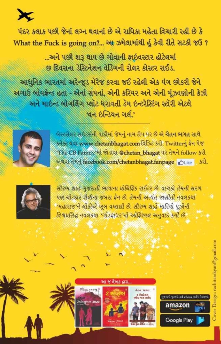 બેસ્ટસેલર રાઇટર્સની યાદીમાં જેમનું નામ ટોપ પર છે એ ચેતન ભગત સાથે કનેક્ટ થવા www.chetanbhagat.com વિઝિટ કરો. Twitterનું ફૅન પેજ ‘The CB Familyમાં જોડાવા @chetan_bhagat પર તેમને follow કરો અથવા તેમનું facebook.com/chetanbhagat.fanpage Like કરો.