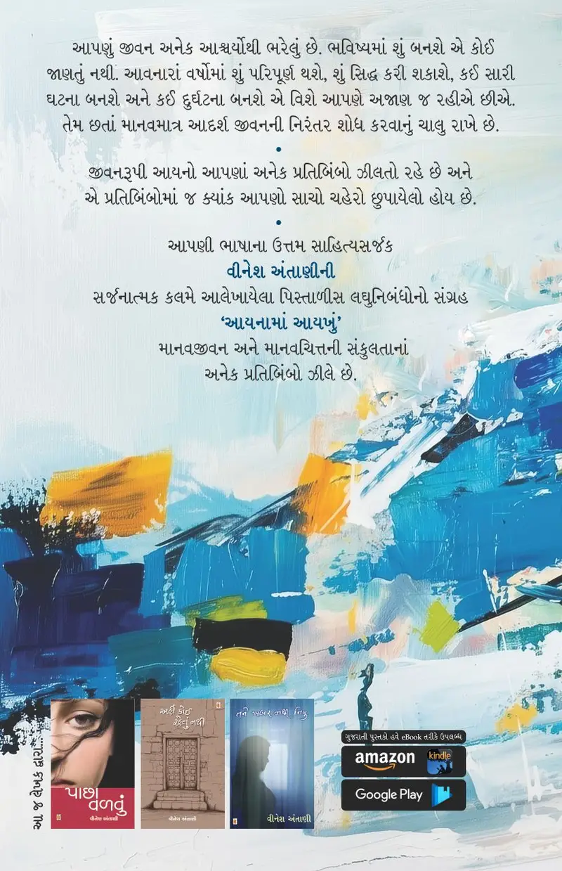 આપણી ભાષાના ઉત્તમ સાહિત્યસર્જક વીનેશ અંતાણીની સર્જનાત્મક કલમે આલેખાયેલા પિસ્તાળીસ લઘુનિબંધોનો સંગ્રહ ‘આયનામાં આયખું’ માનવજીવન અને માનવચિત્તની સંકુલતાનાં અનેક પ્રતિબિંબો ઝીલે છે.