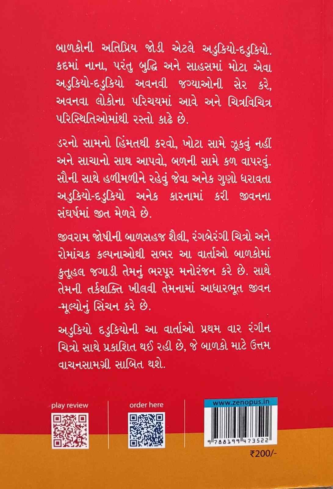અડુકિયો દડુકિયોની આ વાર્તાઓ પ્રથમ વાર રંગીન ચિત્રો સાથે પ્રકાશિત થઈ રહી છે, જે બાળકો માટે ઉત્તમ વાચનસામગ્રી સાબિત થશે.