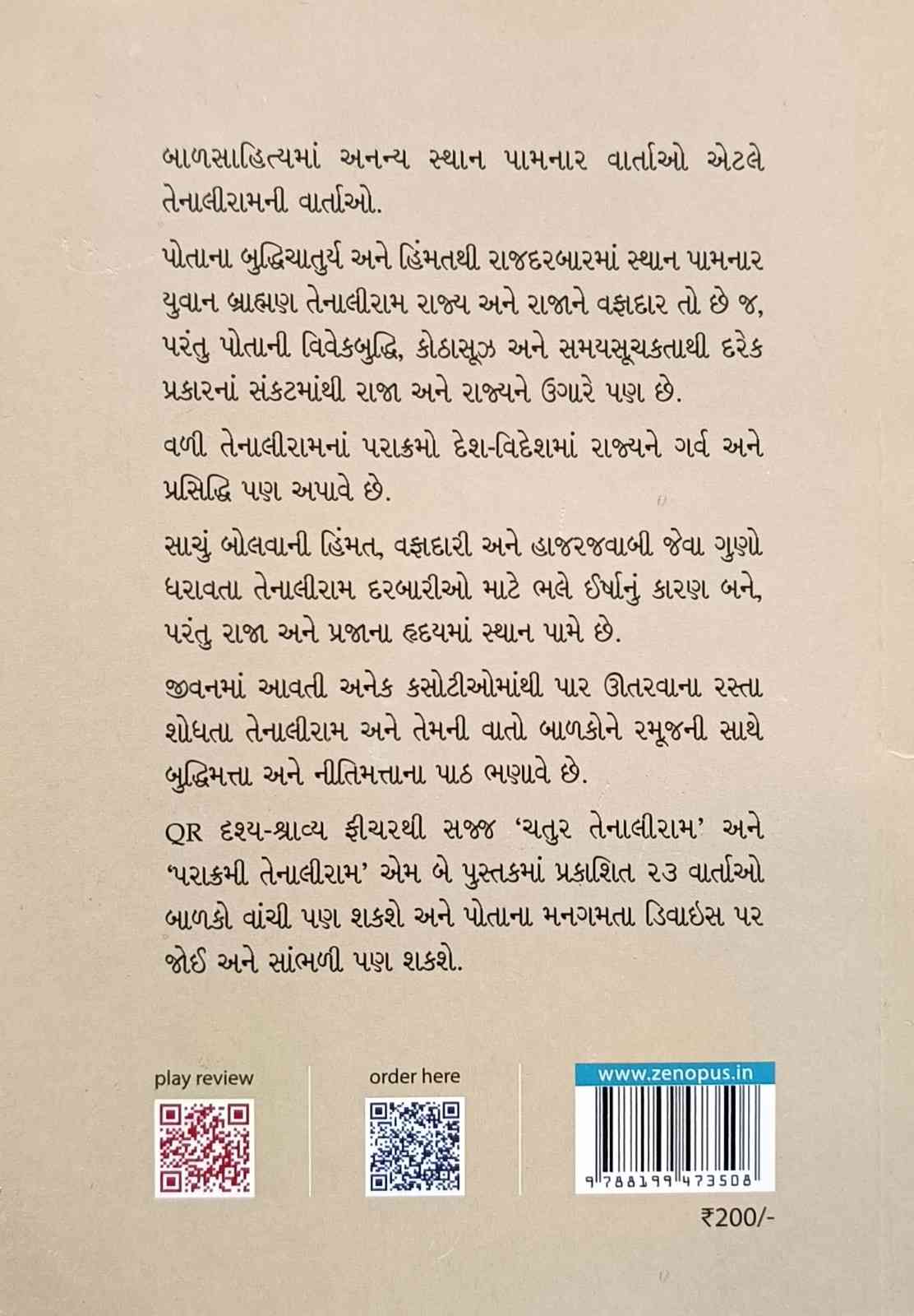 QR દૃશ્ય-શ્રાવ્ય ફીચરથી સજ્જ ‘ચતુર તેનાલીરામ’ અને ‘પરાક્રમી તેનાલીરામ’ એમ બે પુસ્તકમાં પ્રકાશિત ૨૩ વાર્તાઓ બાળકો વાંચી પણ શકશે અને પોતાના મનગમતા ડિવાઇસ પર જોઈ અને સાંભળી પણ શકશે.