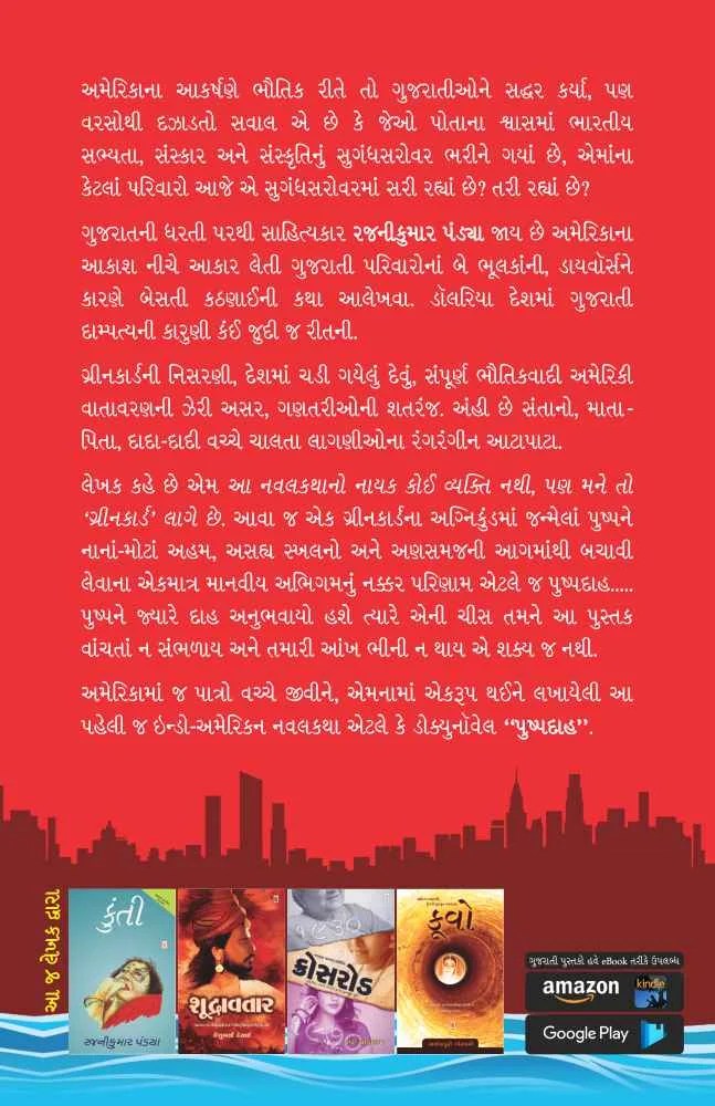 અમેરિકામાં જ પાત્રો વચ્ચે જીવીને, એમનામાં એકરૂપ થઈને લખાયેલી આ પહેલી જ ઇન્ડો-અમેરિકન નવલકથા એટલે કે ડોક્યુનૉવેલ “પુષ્પદાહ”.