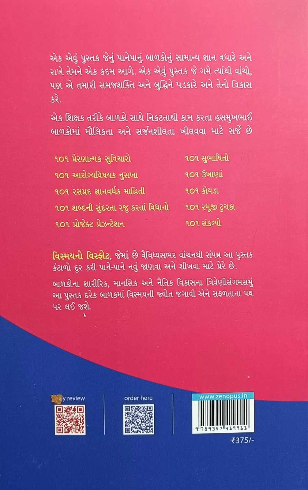 ૧૦૧ સંકલ્પો વિસ્મયનો વિસ્ફોટ, જેમાં છે વૈવિધ્યસભર વાંચનથી સંપન્ન આ પુસ્તક કંટાળો દૂર કરી પાને-પાને નવું જાણવા અને શીખવા માટે પ્રેરે છે.