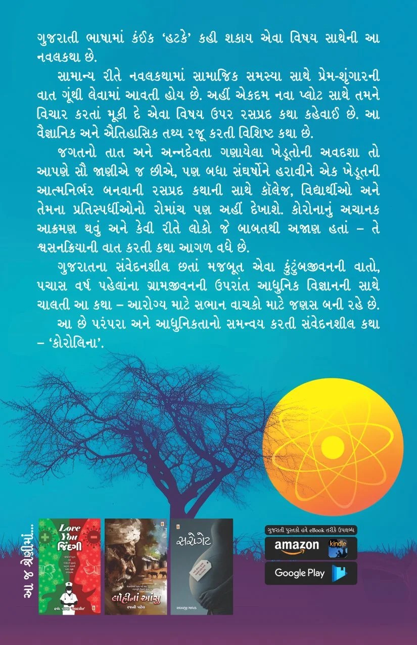 ગુજરાતના સંવેદનશીલ છતાં મજબૂત એવા કુંટુંબજીવનની વાતો, પચાસ વર્ષ પહેલાંના ગ્રામજીવનની ઉપરાંત આધુનિક વિજ્ઞાનની સાથે ચાલતી આ કથા – આરોગ્ય માટે સભાન વાચકો માટે જણસ બની રહે છે.