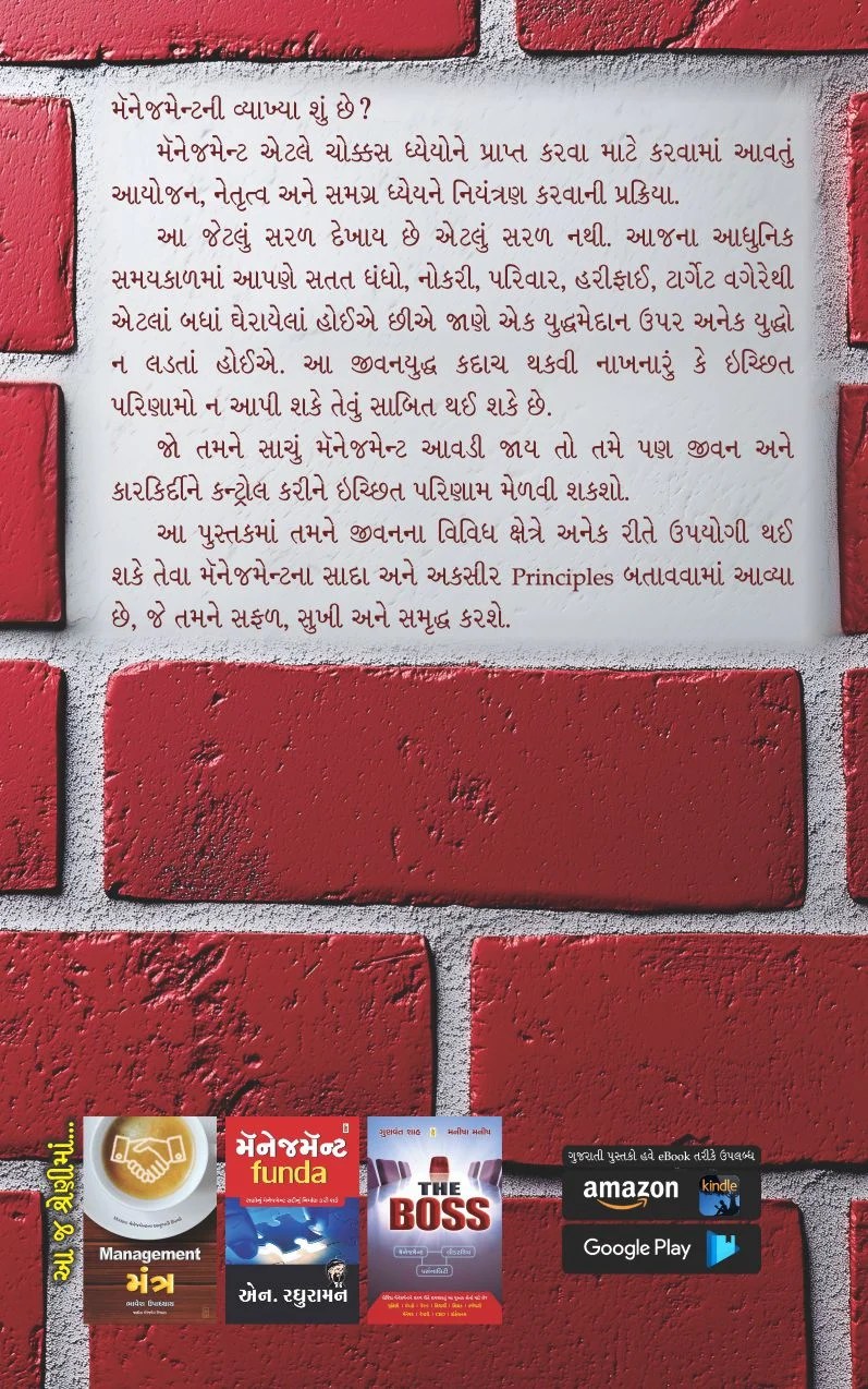 આ પુસ્તકમાં તમને જીવનના વિવિધ ક્ષેત્રે અનેક રીતે ઉપયોગી થઈ શકે તેવા મૅનેજમેન્ટના સાદા અને અકસીર Principles બતાવવામાં આવ્યા છે, જે તમને સફળ, સુખી અને સમૃદ્ધ કરશે.